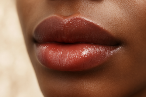A semi-sheer natural red lipstick.